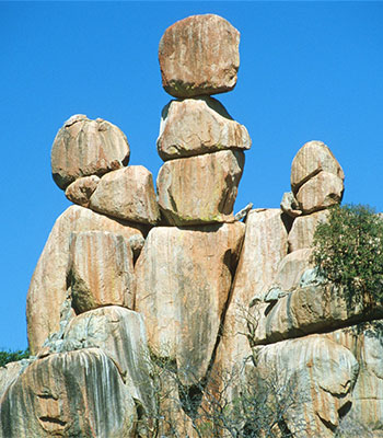 Home to a significant number of black and white rhinos and black eagles, this beautiful park of Zimbabwe has iconic balancing rock formations.